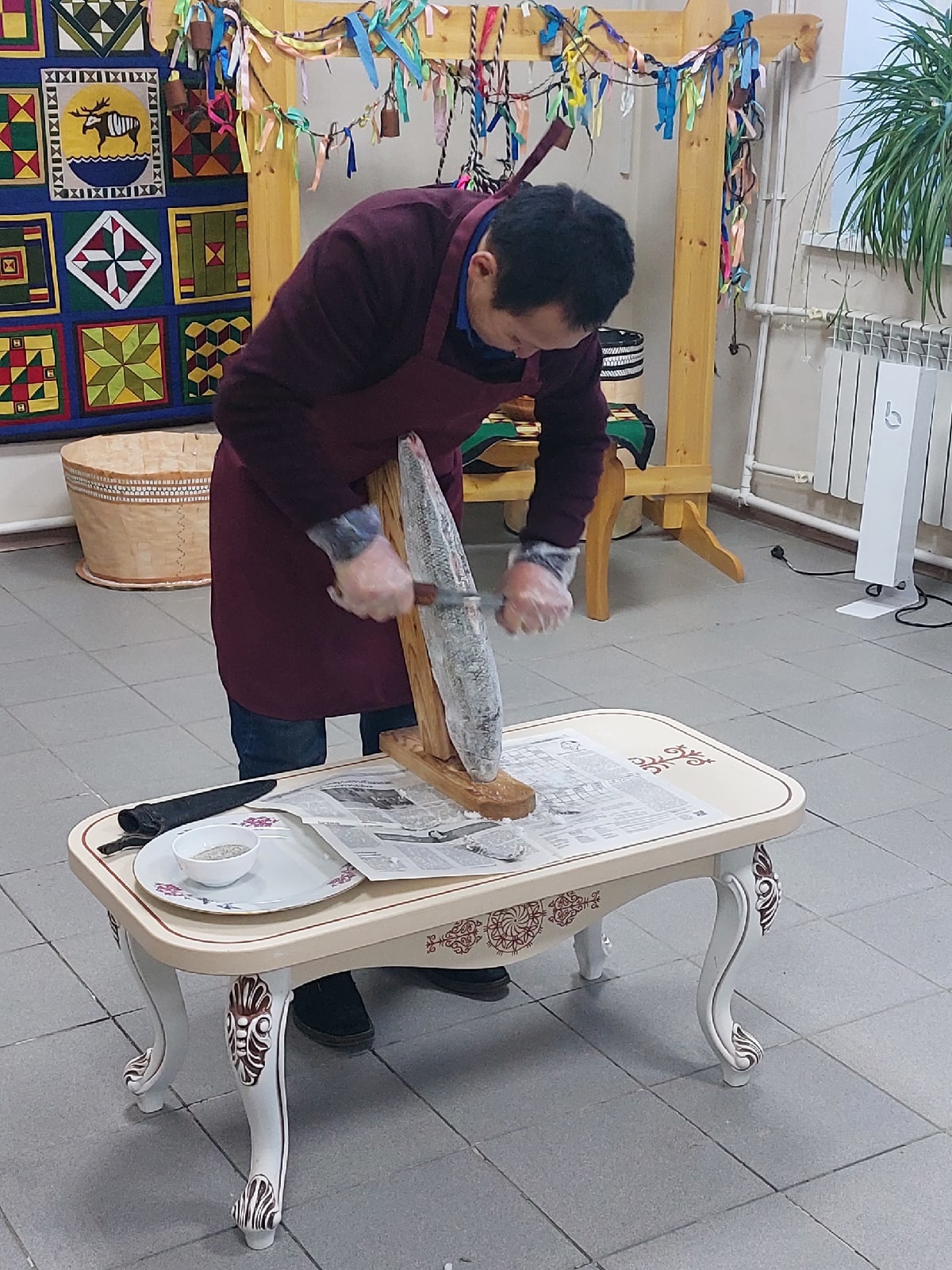 Тон балык, куерчэх, алаадьы, ууттээх чэй Бугунну дьоро кун бэлиэ тугэннэрэ. Тон балыгы астааьынна Усть-Яна Туматыттан ыалдьыппыт Сергей Колесов маастар кылаас маанылаа5ын ыытта. Онтон куерчэх ытыйыытыгар нэьилиэк Далбар хотуттара кыттаннар кэлбит дьону сэргэхсэттилэр. Кыайыылаахтар «Чэчир» ма5аьыынна сертификаттарынан на5араадаланан ерегейдере улаатта. Тумуккэ кэлбит дьон бары «Дьиэрэй ырыа» КК улэьиттэрин аатыттан тон балыгынан, куерчэхтээх алаадьынан, ууттээх чэйинэн кундулэнэн дуоьуйа астынан тар5астылар.